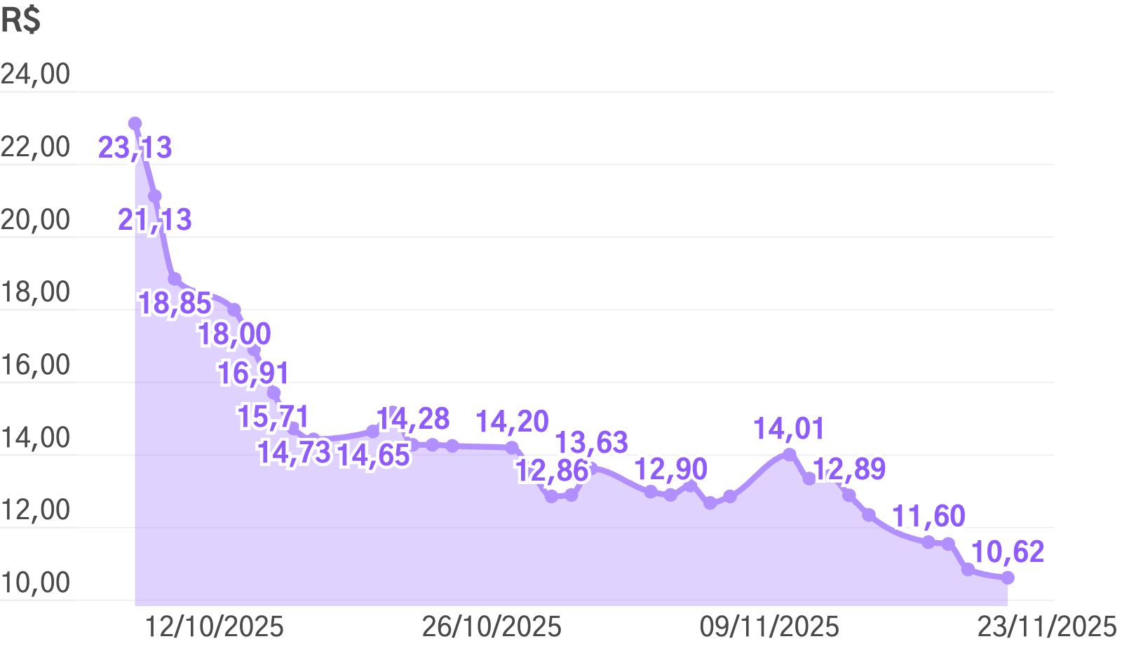 As bitcoin treasury companies brasileiras - empresas que mantêm parte do caixa em bitcoin - também sentiram o impacto da correção recente das criptos. A OranjeBTC, que fez sua estreia na bolsa no início de outubro, acumula queda de 30% no acumulado mensal, acima do recuo do próprio bitcoin (22%). Já a Méliuz cai 17%, mostrando que a aversão ao risco atingiu até companhias acostumadas à volatilidade do setor.