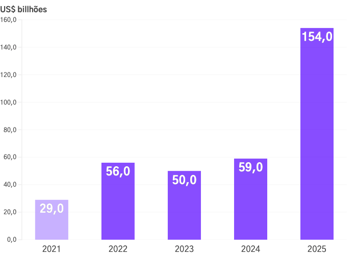 Apesar do avanço da regulação, as criptomoedas ainda seguem sendo usadas em atividades ilegais. Um relatório divulgado pela Chainalysis mostra que transações ligadas a crimes com ativos digitais somaram US$ 154 bilhões no ano passado, alta de 155% em relação a 2024. Segundo o estudo, as stablecoins foram os principais instrumentos usados por criminosos virtuais, respondendo por 88% de todo o volume movimentado em atividades ilícitas.